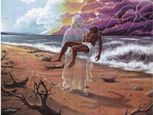 — Моё милое, милое дитя. Я люблю тебя и никогда тебя не покину. Когда были в твоей жизни горе и испытания, лишь одна цепочка следов тянулась по дороге. Потому что в те времена я нёс тебя на руках.